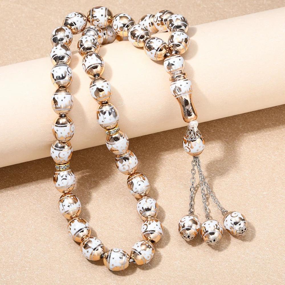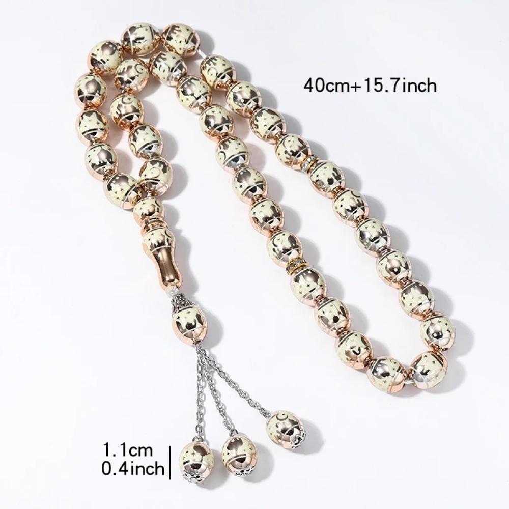 إسورة مسبحة للرجال ، مصنوعة من خرز إسلامي، وتعمل كعداد تسبيح لممارسة الذكر . تأتي بتصميم بسيط وأنيق، مثالية للمسلمين لأداء التسبيح والذكر اليومي، ويمكن استخدامها أيضًا كأساور .